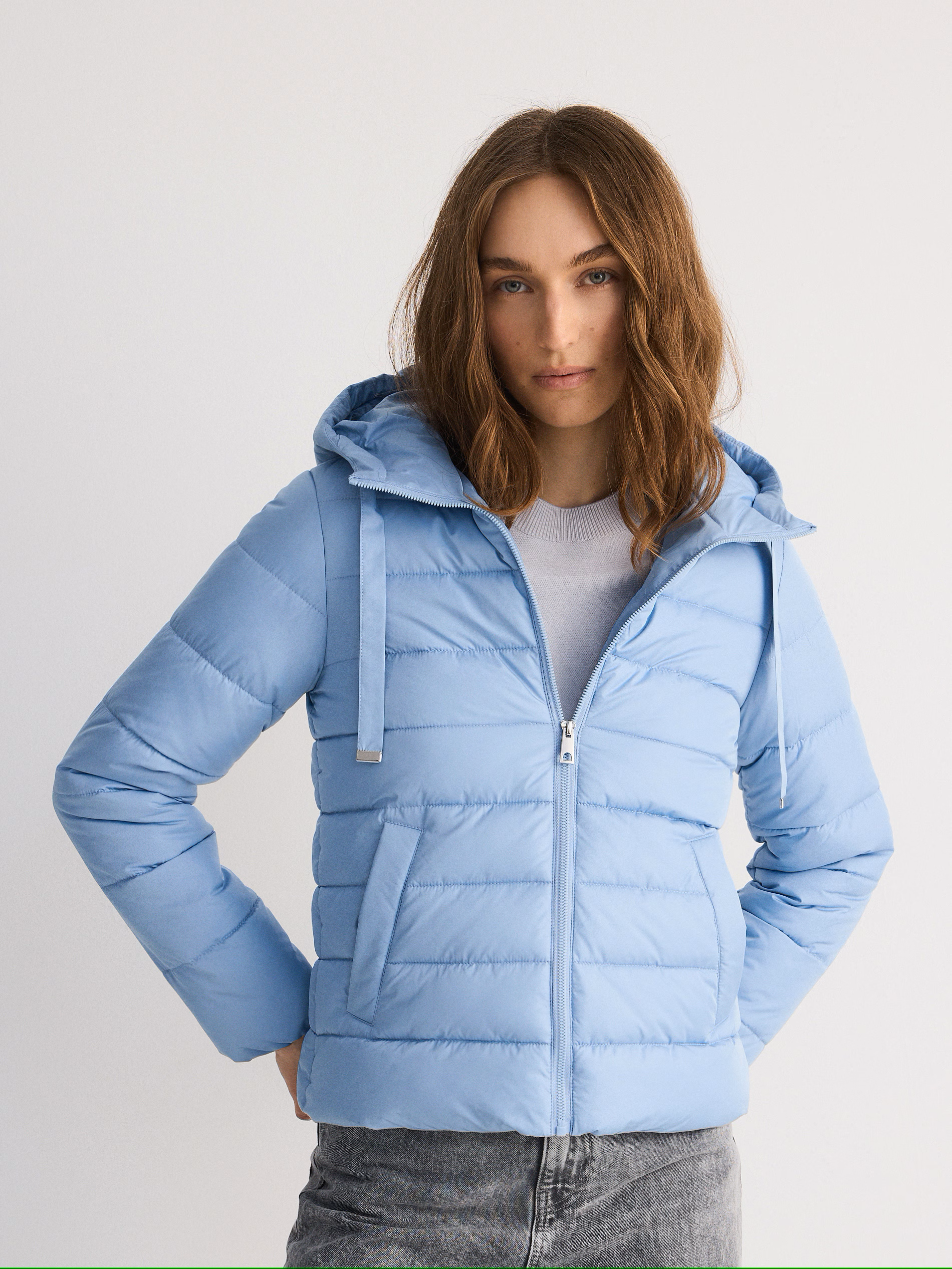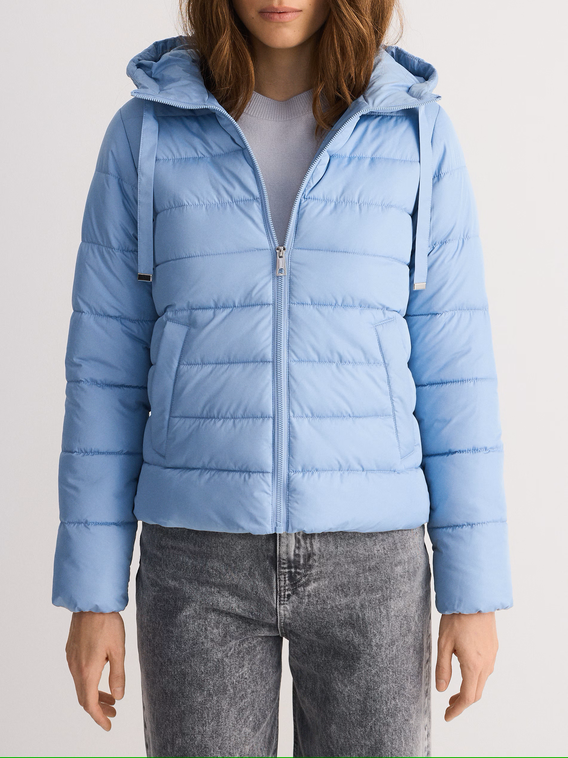 Kurtka o prostym kroju, wykonana z pikowanej tkaniny.